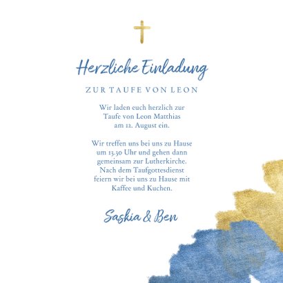 Einladung Taufe Blau. Beispieltext für eine Einladung zur Taufe: „Voller Freude möchten wir euch zur Taufe unseres Sohnes. einladen. Taufe Einladung - Postkarte - Wunderschönes Aquarell in blau mit moderner Typografie - unsere Kartenserie Wunderschönes Aquarell in blau mit moderner Typografie - unsere Kartenserie "Ozean" zur Taufe. mehr aus dieser Serie.