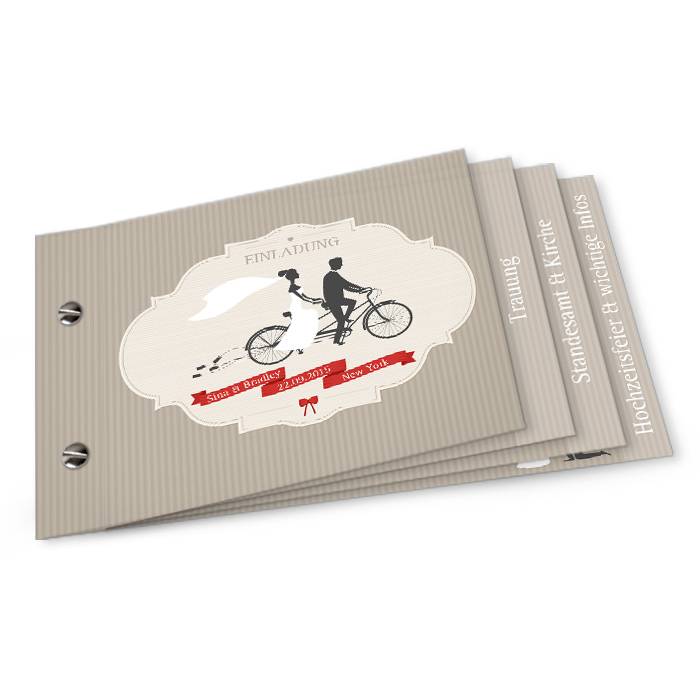 Vintage Hochzeitseinladung mit Tandem als Booklet | Cariñokarten