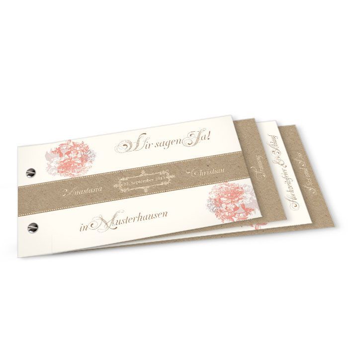 Vintage Hochzeitseinladung als Booklet mit Blüten in Apricot | Cariñokarten