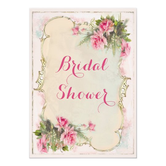 Rosa Vintages Rosen-Shabby Chic-Brautparty Einladung | Zazzle.de